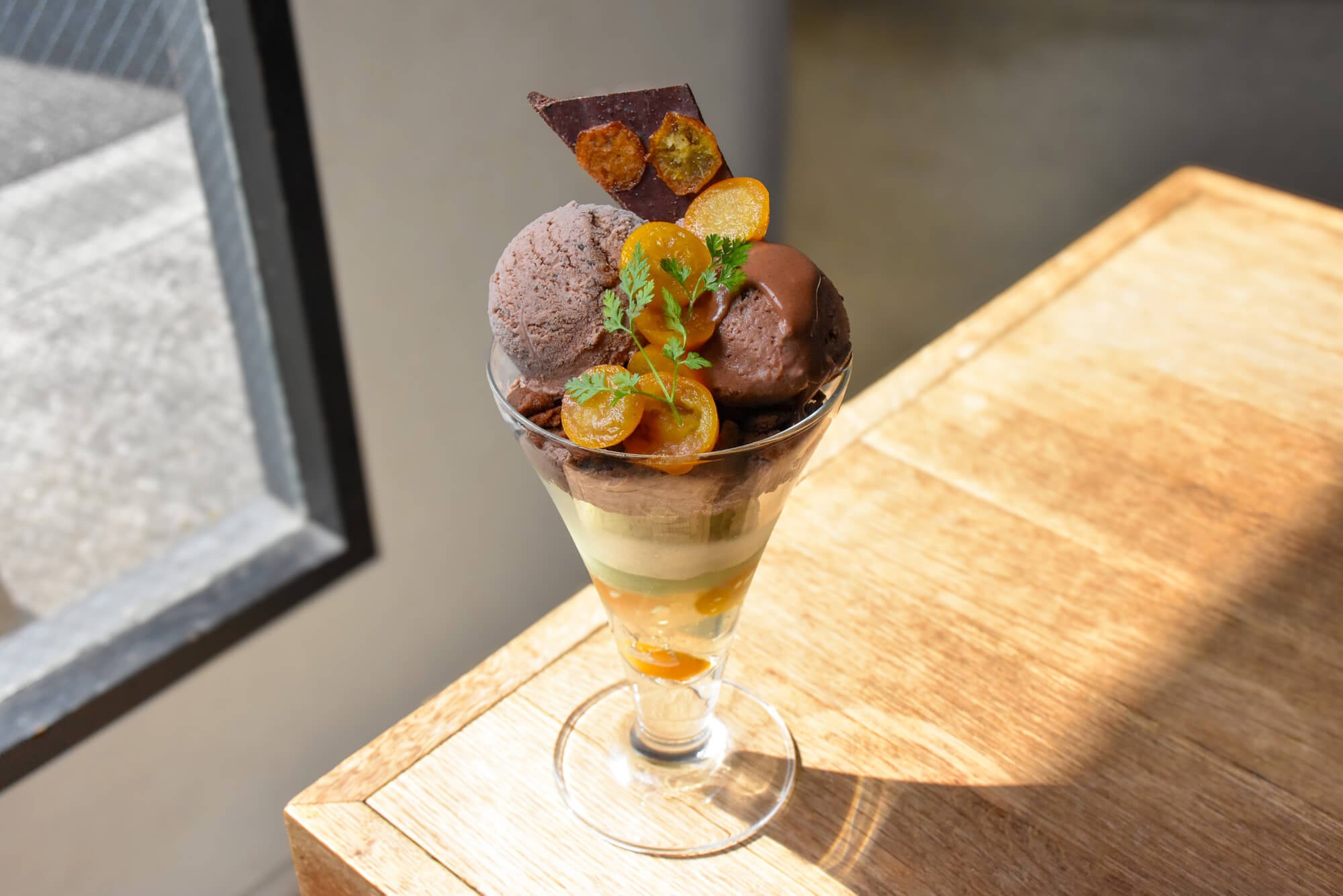 Minimalより、金柑×緑茶×世界のカカオを楽しむ、Bean to Bar専門店ならではの爽やかなチョコレートパフェが季節限定で登場!