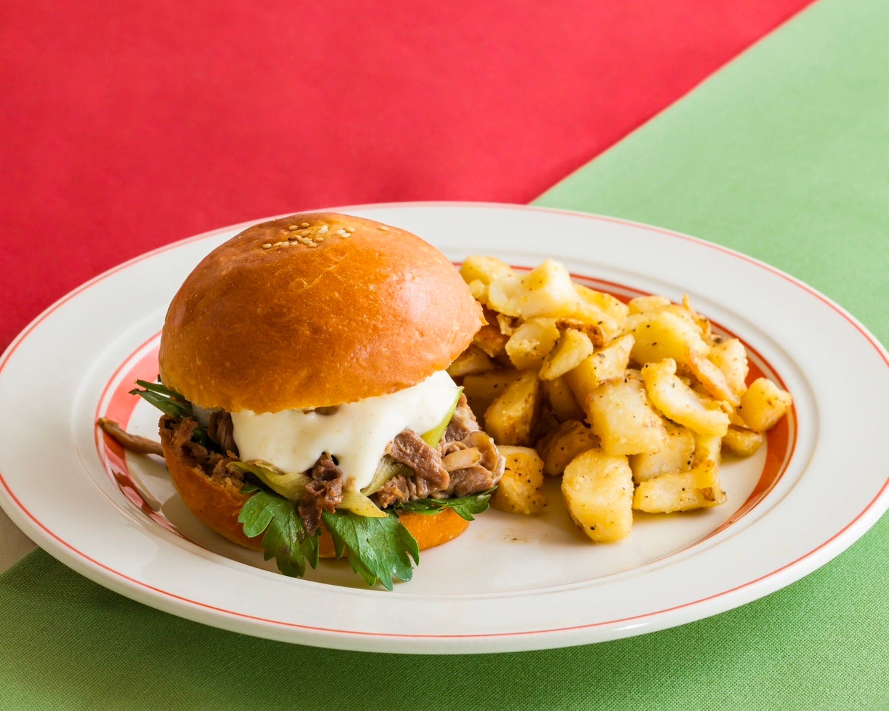 香ばしいブリオッシュバンズで挟んだ贅沢なハンバーガー