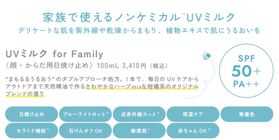 家族で使えるノンケミカルUVミルク『UVミルク for Family』2025年2月28日(金)から数量限定発売いたします。