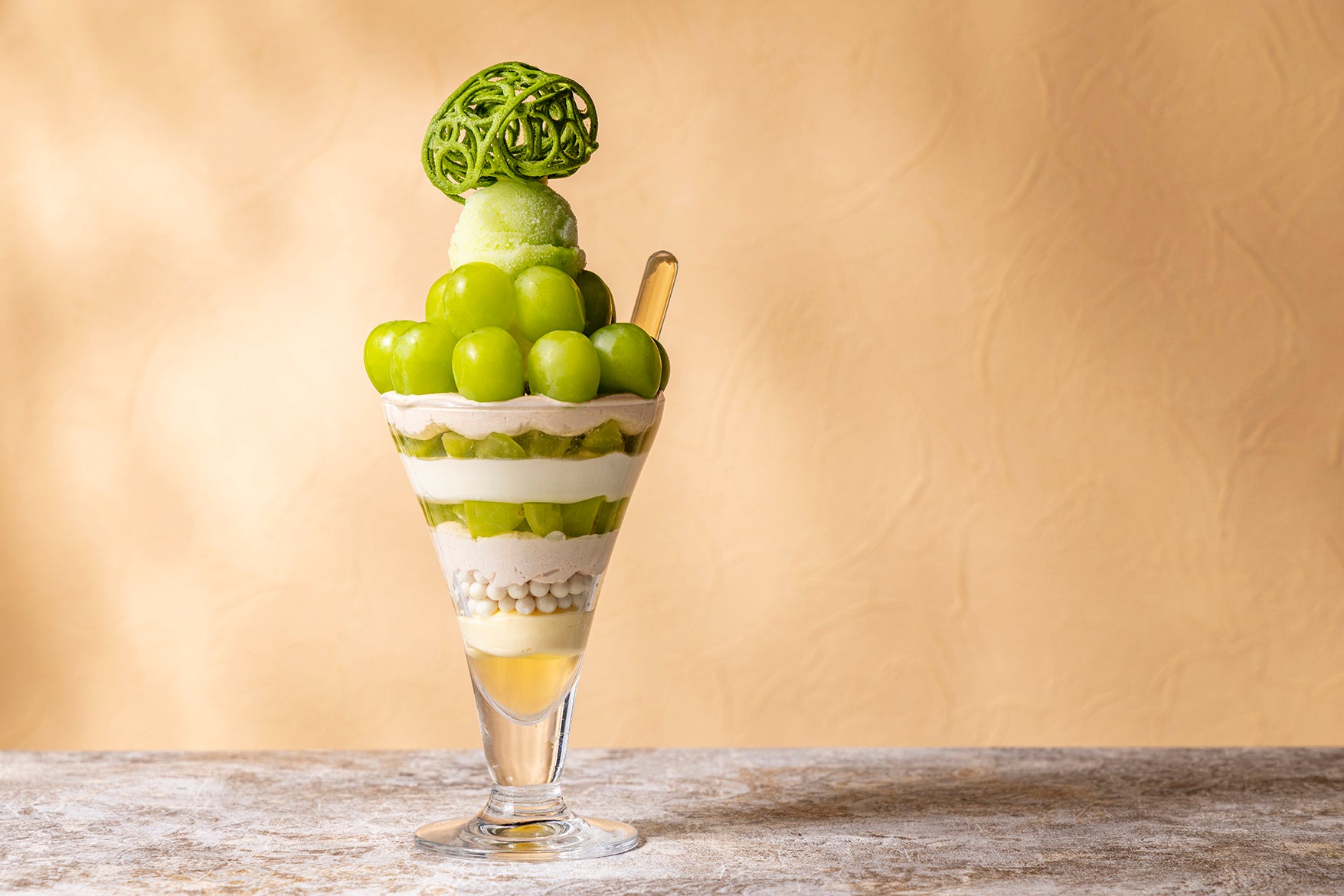 みずみずしいシャインマスカットをふんだんにあしらい、ほのかな甘みのシナモンシャンティーが味わいに立体感を添えます。とろけるようなマスカットパンナコッタに、華やかに香るエルダーフラワーが寄り添い、爽やかな甘さが広がります。パールクラッカンの軽やかな食感がアクセントとなり、香りと味わいの余韻が重なり合う、清らかで優美なパフェです。