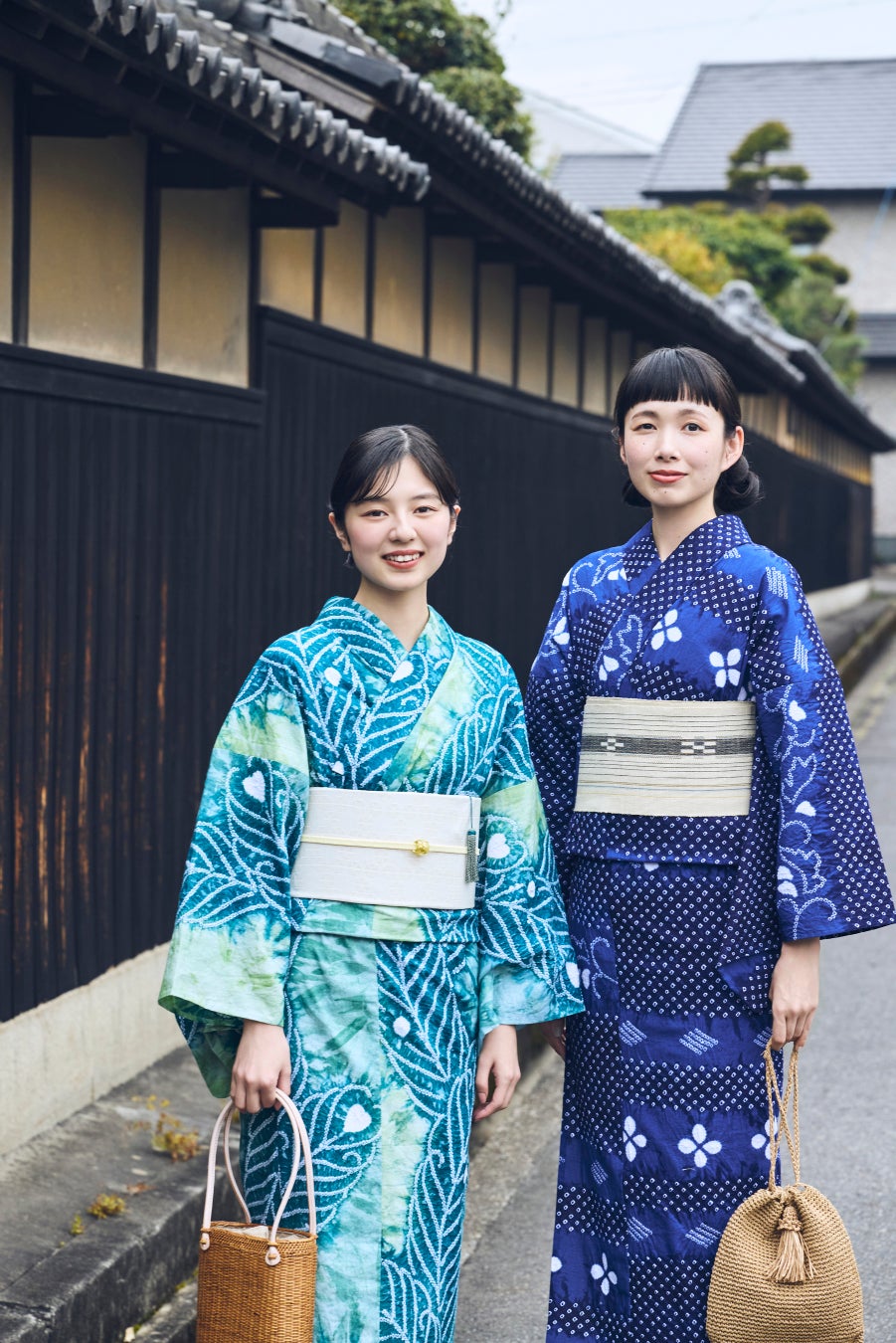 2026年は、絞りゆかたのさんち・有松の町並みと職人の手仕事を背景に、オリジナルの絞りゆかたをはじめ、「風花」「夏音」シリーズの新作スタイリングを撮影しました。