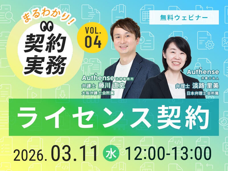 【無料ウェビナー開催2026.3.11】【まるわかり!契約実務】Vol.4 ライセンス契約|Authense法律事務所