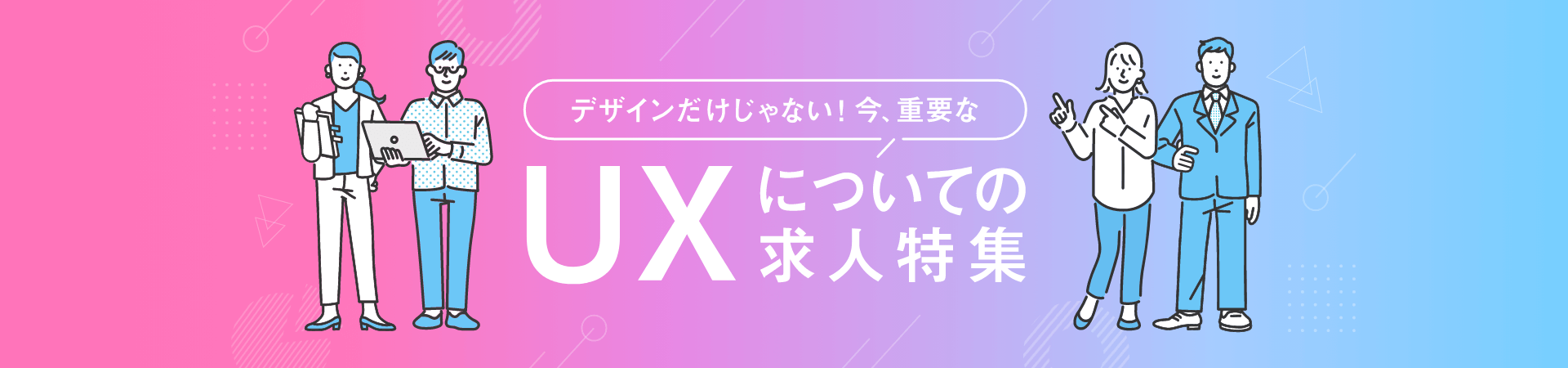 今回の特集ページでは、「UX」求人特集はもちろんのこと、異職種から「UX」へキャリアチェンジした成功事例を紹介しています。さらに、一般社団法人 UXインテリジェンス協会事務局長を務める藤井 保文氏が「UXの重要性」「職業や求められるスキル」を解説するコーナーを設け、「UX」への理解や「UX人材」のキャリア形成への理解が深まる内容としています。