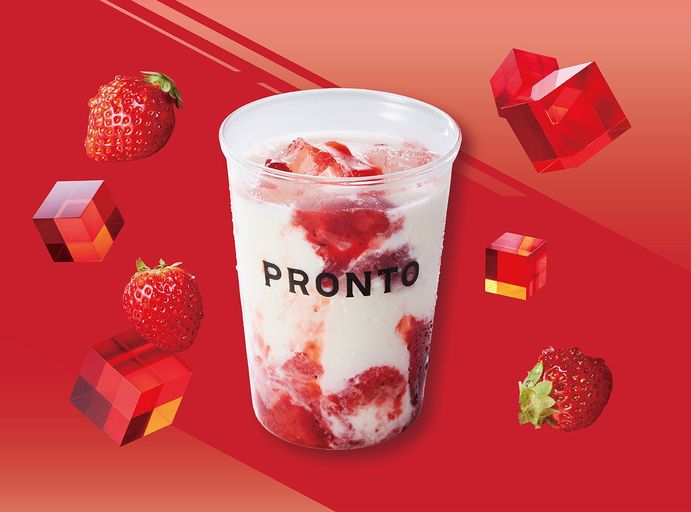 株式会社プロントコーポレーション(本社:東京都港区、代表取締役社長:杉山和弘)は、「PRONTO(プロント)」のカフェタイム(サカバタイム除く)にて、Pラテ「つぶつぶいちごパフェラテ」と季節限定ドリンク「つぶつぶいちごのアールグレイティーソーダ」を、4月8日(火)より発売いたします。
