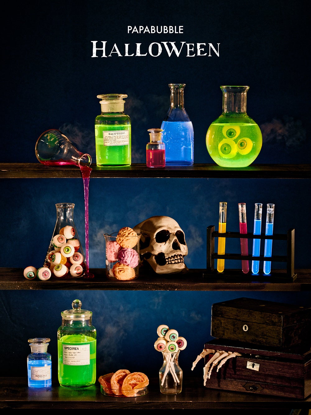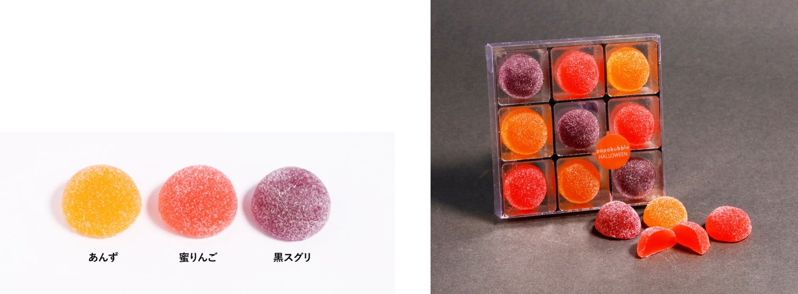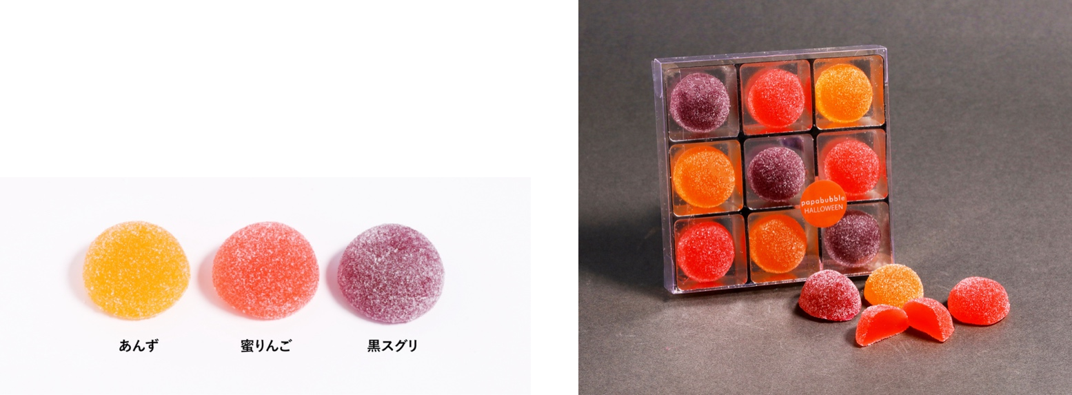 また、昨年人気だった目玉キャンディをはじめ、脳みそマシュマロや目玉グミ・耳グミなど、ダークでちょっとキモカワイイ世界観をパパブブレらしく表現しています。職人の遊び心が詰まった、見て楽しく、食べて美味しいハロウィンシリーズです。