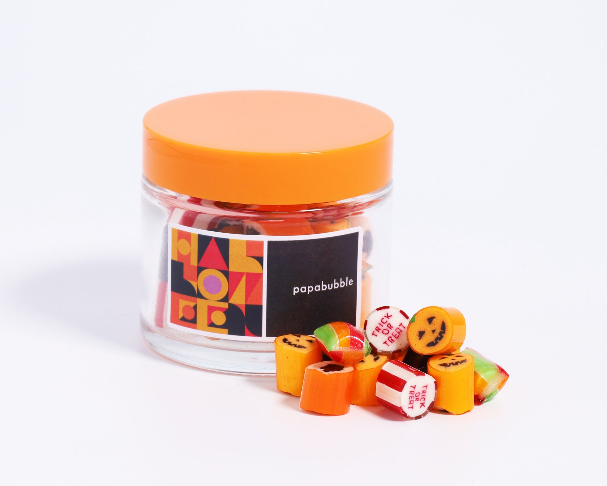 オレンジ色でまとめた、ハロウィン感溢れる5種類のフレーバーで構成された「ハロウィンミックス」。光に透かすと窓が光る家や、目が出現する猫のデザインなど、遊び心満載のキャンディを詰め合わせました。アセロラソーダ、レモンスカッシュ、パッションフルーツといった爽やかなフレーバーに加え、人気のカボチャプリンフレーバーを使用しています。