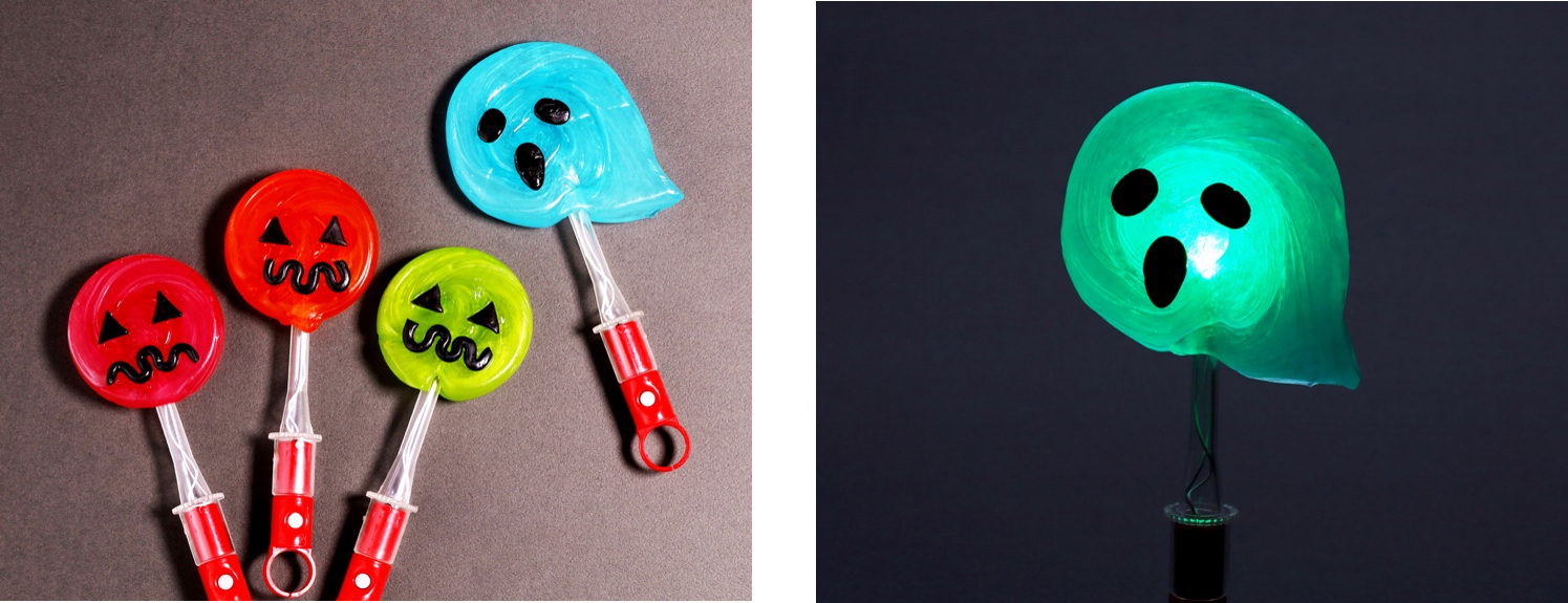毎年大人気の光るロリポップが今年も登場します。職人が1つ1つ丁寧に顔を作りあげるので、それぞれの表情に少しづつ違いが生まれます。