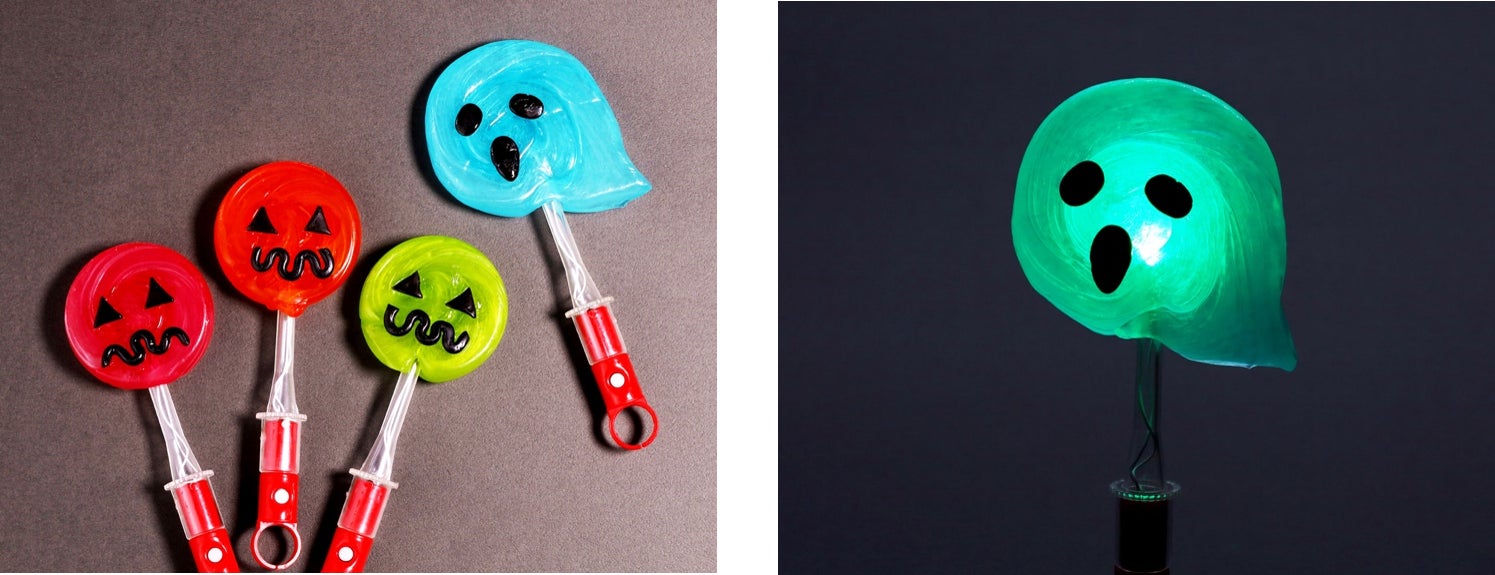 職人が一つ一つ顔を作り上げる「光るハロウィンロリポップ」
