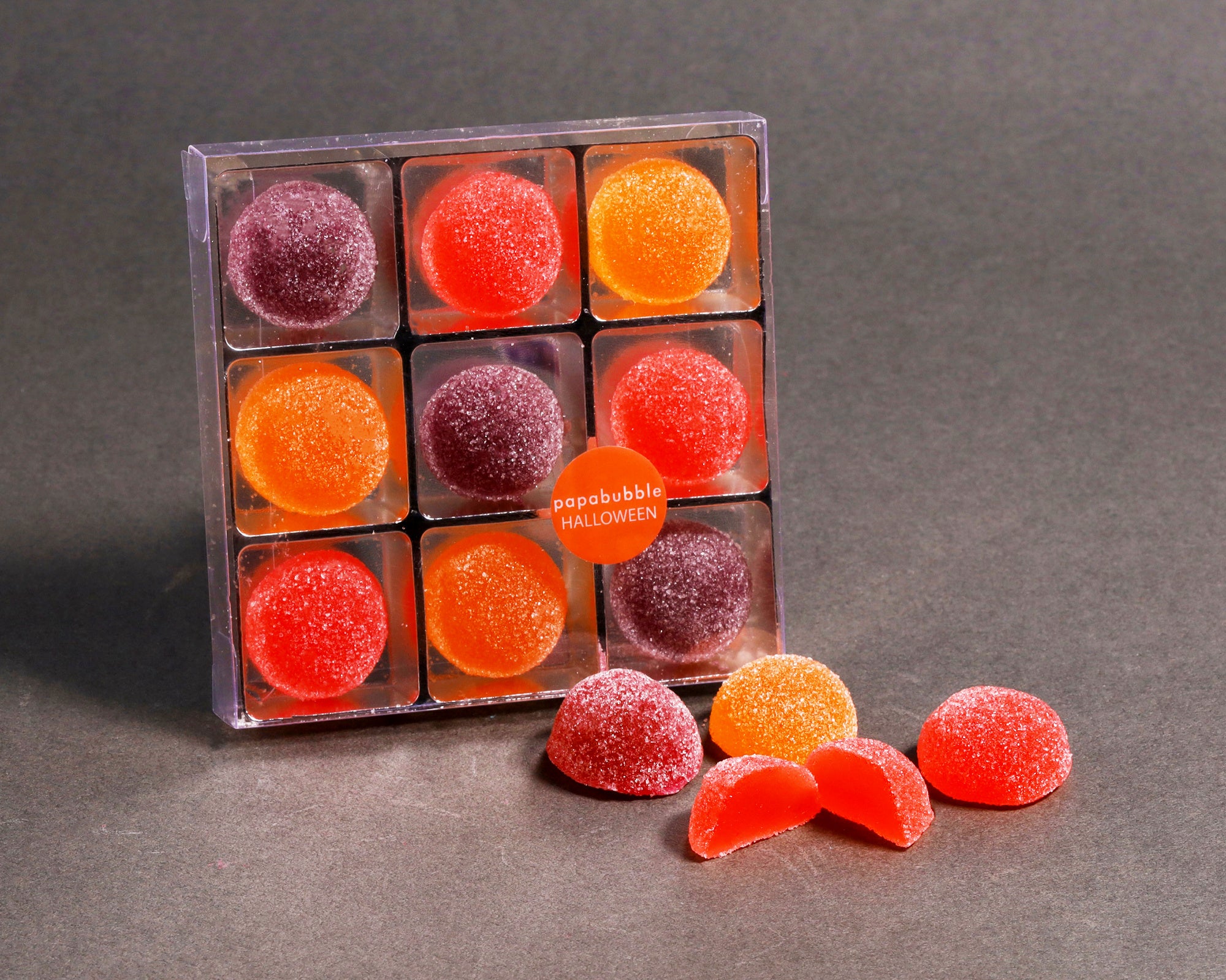 リアルな脳みそを拳サイズに収めた、パパブブレハロウィンの定番商品です。ベリーミックス、オレンジ、カシスグレープの3種類を展開。今年はオレンジとカシスグレープの2種類が、食べると舌が染まる仕様になっています。ハロウィンパーティーに持っていき、お友達を驚かせてみましょう。