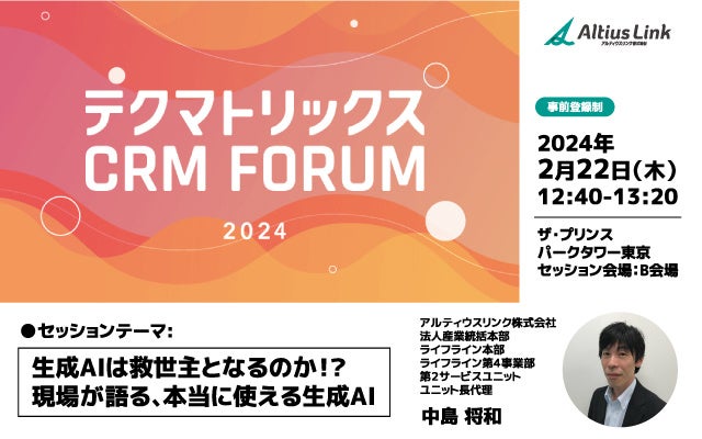 アルティウスリンク、「CRM FORUM2024」の生成AIセッションに登壇。2月22日開催『生成AIは救世主となるのか!?現場が語る本当に使える生成AI』