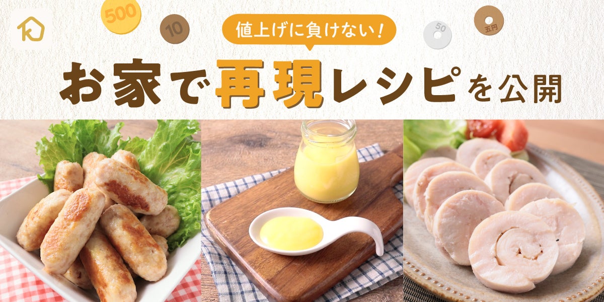 国内No.1のレシピプラットフォーム「クラシル」(※1)は、原材料の高騰や円安の影響による食品の値上げを受け、該当食品の再現レシピを公開します。ハム・ソーセージやマヨネーズ、チーズなどを自宅でお作りいただけるレシピを揃えました。