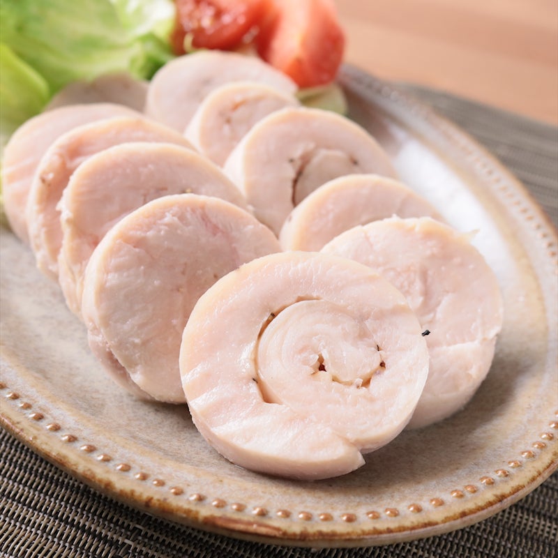ベーシックな鶏ハム。シンプルな味つけなので、そのまま食べるのはもちろん、サラダの具材や麺類のトッピングとしてもおいしく、簡単にお作りいただけます。