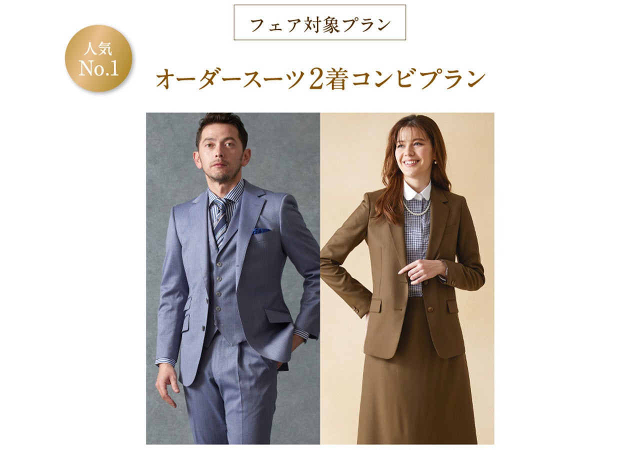 春モノ新作×オールシーズンモノ×ビジネス×礼服、メンズ、レディースなど、お好きな組み合わせでオーダーが可能です。また、お知り合いやご家族と1着ずつのオーダーでもフェア適用となります。