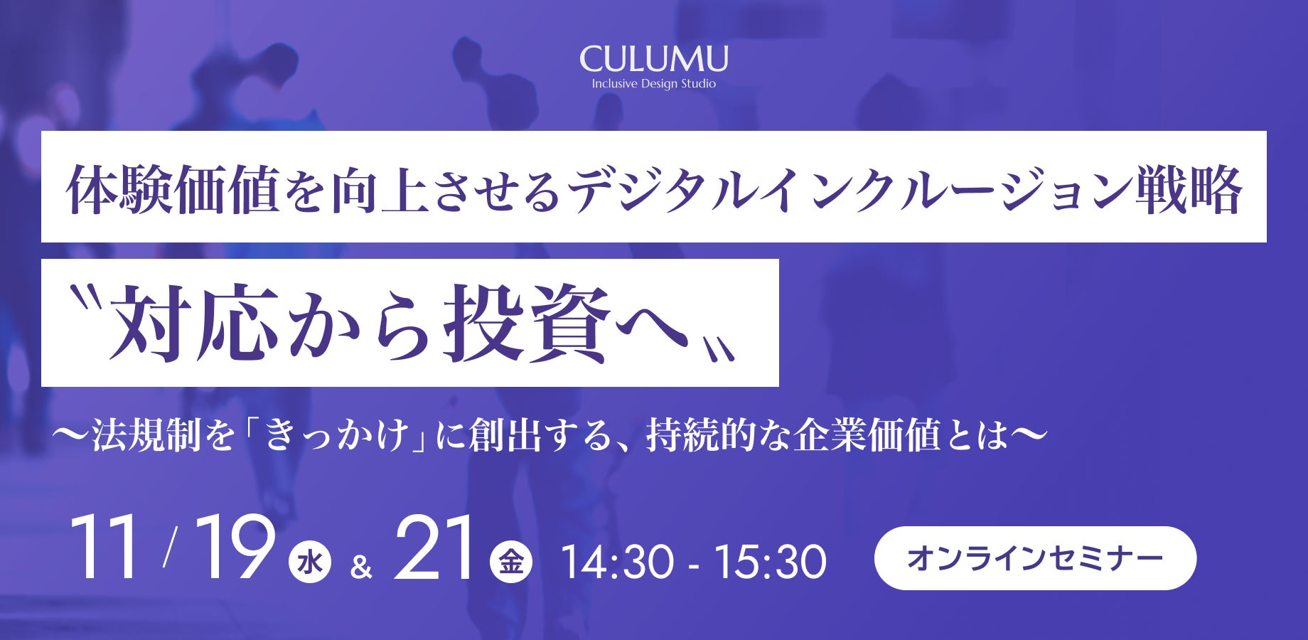 インクルーシブデザインスタジオCULUMU(運営:株式会社STYZ、本社:東京都渋谷区、代表取締役:田中辰也、以下「CULUMU」)は、オンラインセミナーを2025年11月19日(水)14時30分、そして11月21日(金)14時30分から開催します。