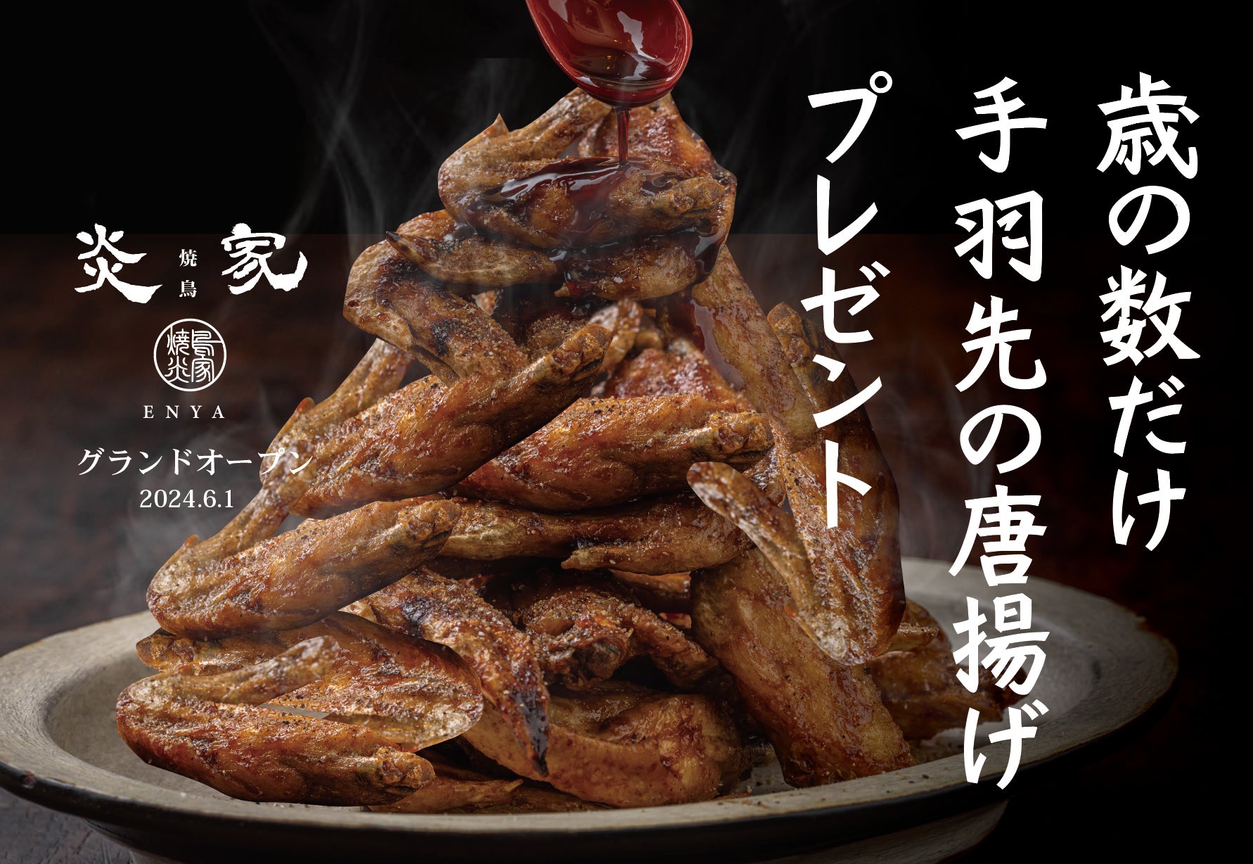 神奈川県相模原と東京都の町田周辺で飲食店を運営する株式会社キープ・ウィルダイニングが「焼鳥 炎家(やきとり えんや)」 南林間店を2024年6月1日にグランドオープン。ここ炎家では、歳の数だけ手羽先の唐揚げをプレゼントするという前代未聞のサービスを永続的に提供。