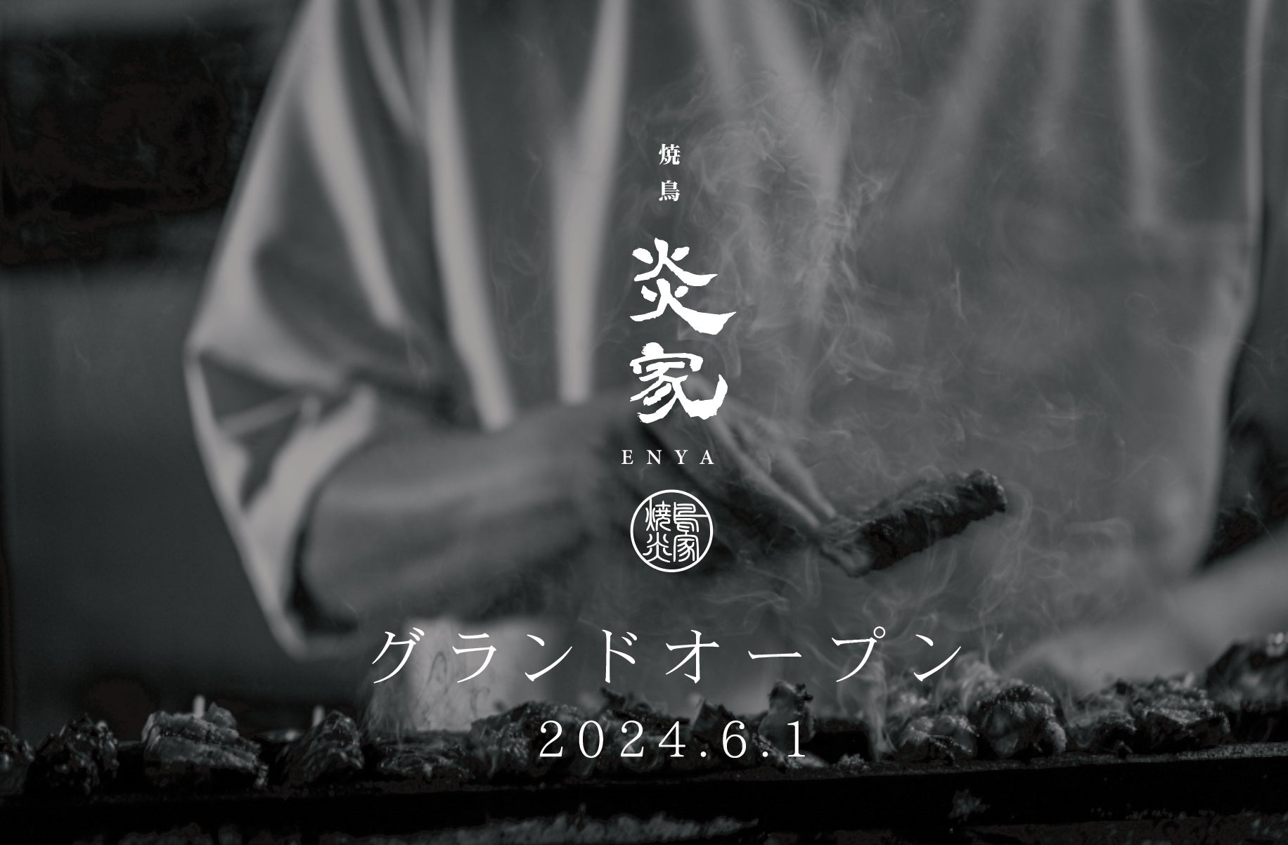そんなサービスを提供する炎家は手羽先の唐揚げ以外にも、こだわりの炭火焼き鳥をメインに「旨い」にこだわった渾身のおつまみを揃えている。2024年6月1日に堂々のグランドオープン。