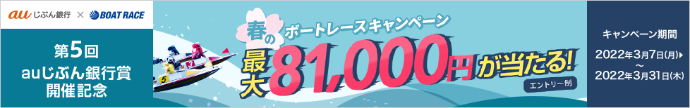 また、今回の開催を記念して、2022年3月7日から「第5回auじぶん銀行賞開催記念!春のボートレースキャンペーン」を実施します。