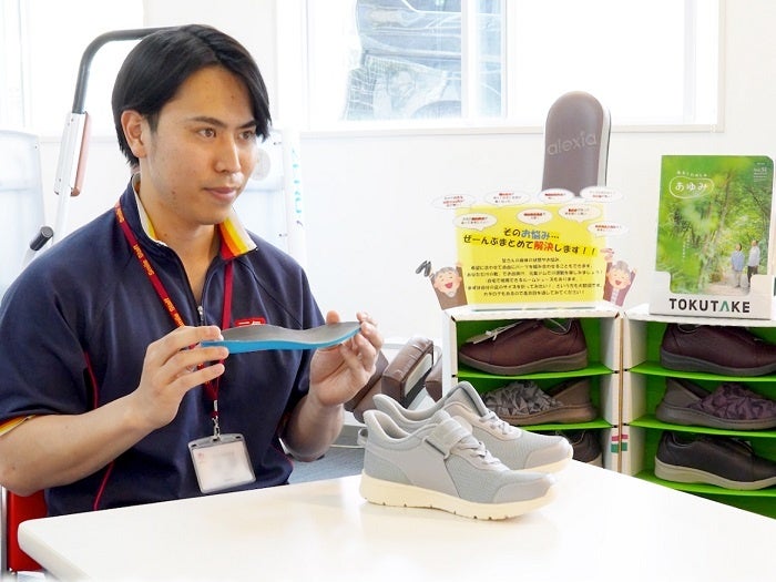 当社は2021年より、当社が運営するリハビリ特化型デイサービス「元氣ジム」において、ご利用者の足のサイズや幅などを計測し、その結果に応じて徳武産業が開発した、足や歩行に悩みのある方向けの「あゆみシューズ」の対面販売を実施しています。