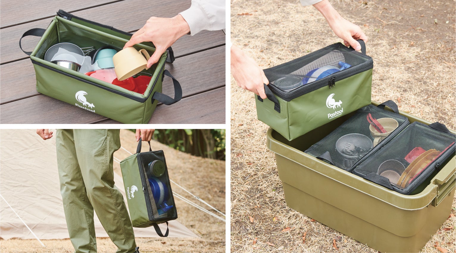 キャンパー御用達の50Lコンテナにぴったりフィット。収納から洗い物までマルチに活躍する防水ケースに、
