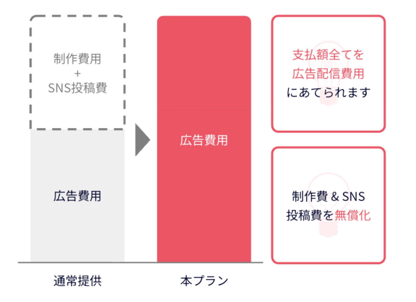 制作・投稿費が実質無償:X広告配信費を一定金額以上ご発注いただくことで、動画制作費用やSNS投稿費用を無償にてご提供いたします。