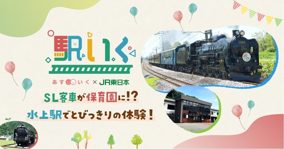 一時保育検索・予約サービス「あすいく」を運営する株式会社grow&partners(代表取締役:幸脇啓子)、JR 東日本スタートアップ株式会社(代表取締役社長:柴田裕)、東日本旅客鉄道株式会社高崎支社(執行役員高崎支社長:樋口達夫)は連携して、「SLぐんま みなかみ」を舞台に、一時保育預かり「駅いくin水上駅」を8月31日(土)に開催します。