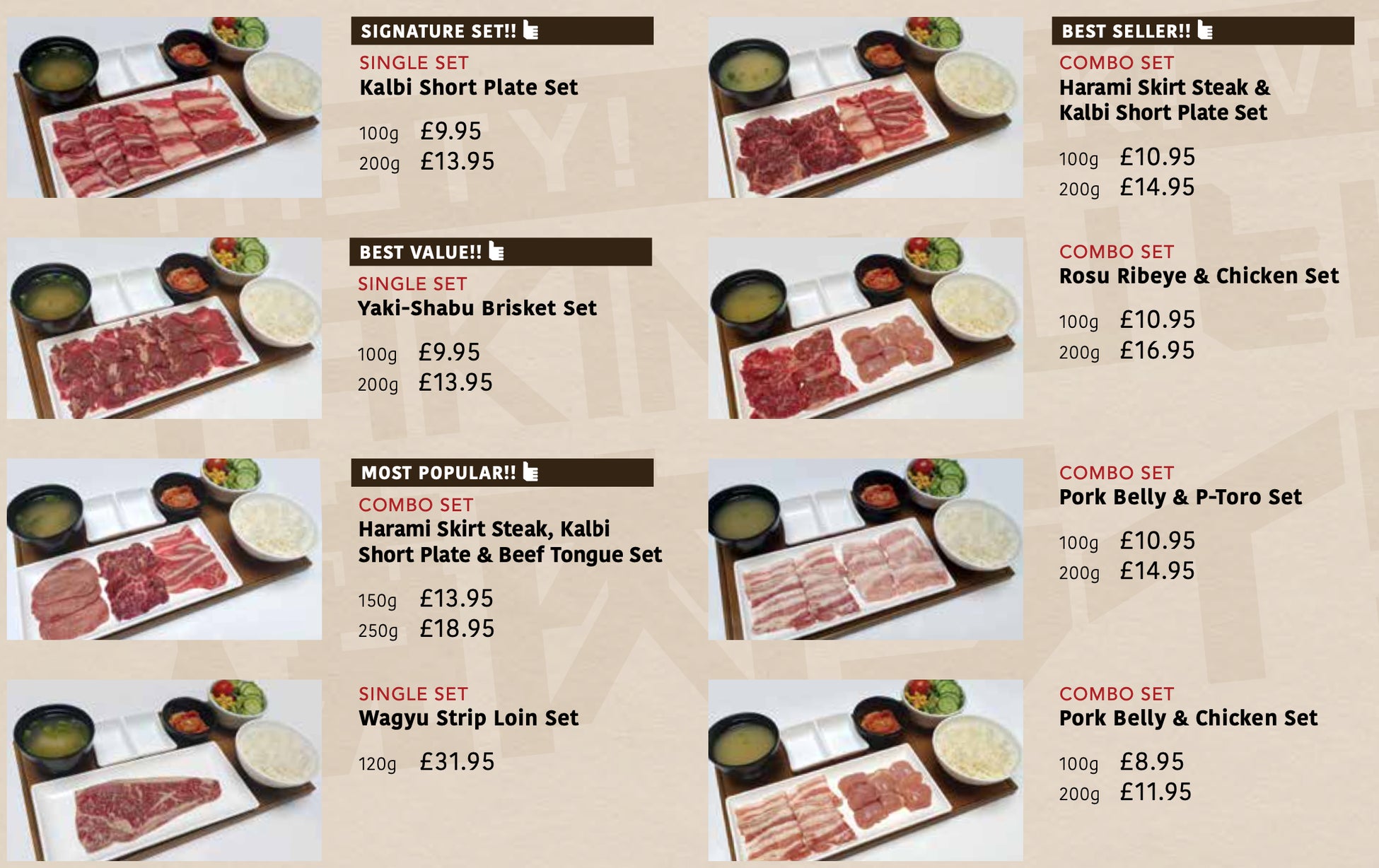・焼きしゃぶブリスケットセット(100g £9.95 1,638円 /200g £13.95 2,230円)