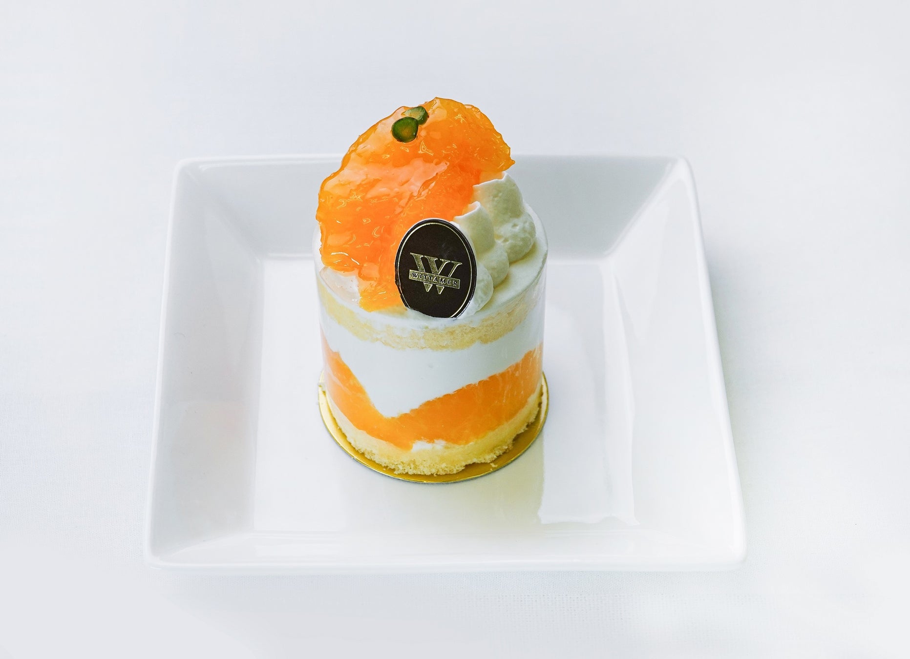 柑橘のお酒のシロップに浸したババ(焼菓子)にデコポンのジャム、カスタードクリーム、生クリームとフレッシュなデコポンをあわせました。