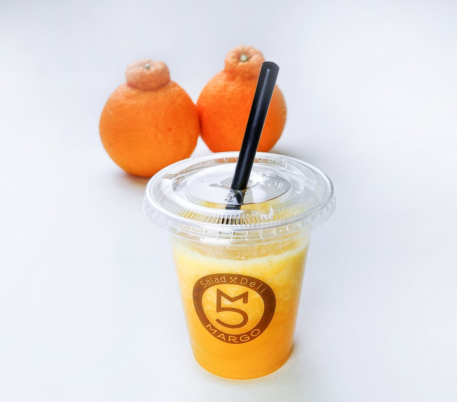 ほぼまるごと1個のデコポンにパイナップルをミックスしたスムージー。甘みと酸味のバランスが絶妙なおいしさです。
