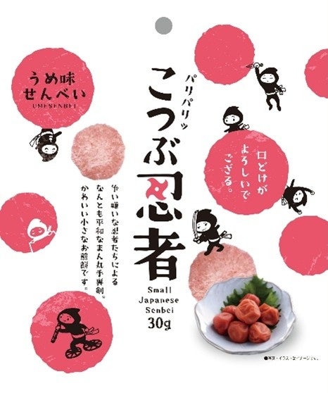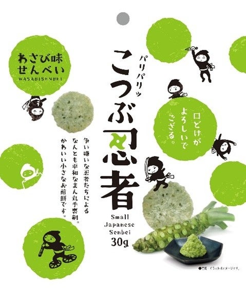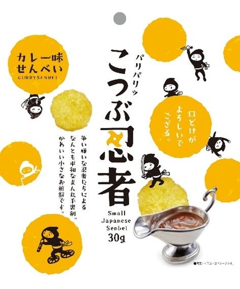 こつぶでまん丸のおせんべい「こつぶ忍者」3種を発売いたします。イメージしたのはつらいことが多い日々に、平和を祈る忍者たちが使うまん丸の手裏剣。ちょっとした癒しと楽しさを提供することをコンセプトに開発されました。手軽に食べられるサイズ感とユニークなデザインで、日常のひとときに笑顔をお届けします。フレーバーはさわやかな風味を楽しめるうめ味、ツンとした刺激がクセになるわさび味、スパイシーであと引く美味しさのカレー味の3種。好みや気分に合わせて選べる点もポイントです。