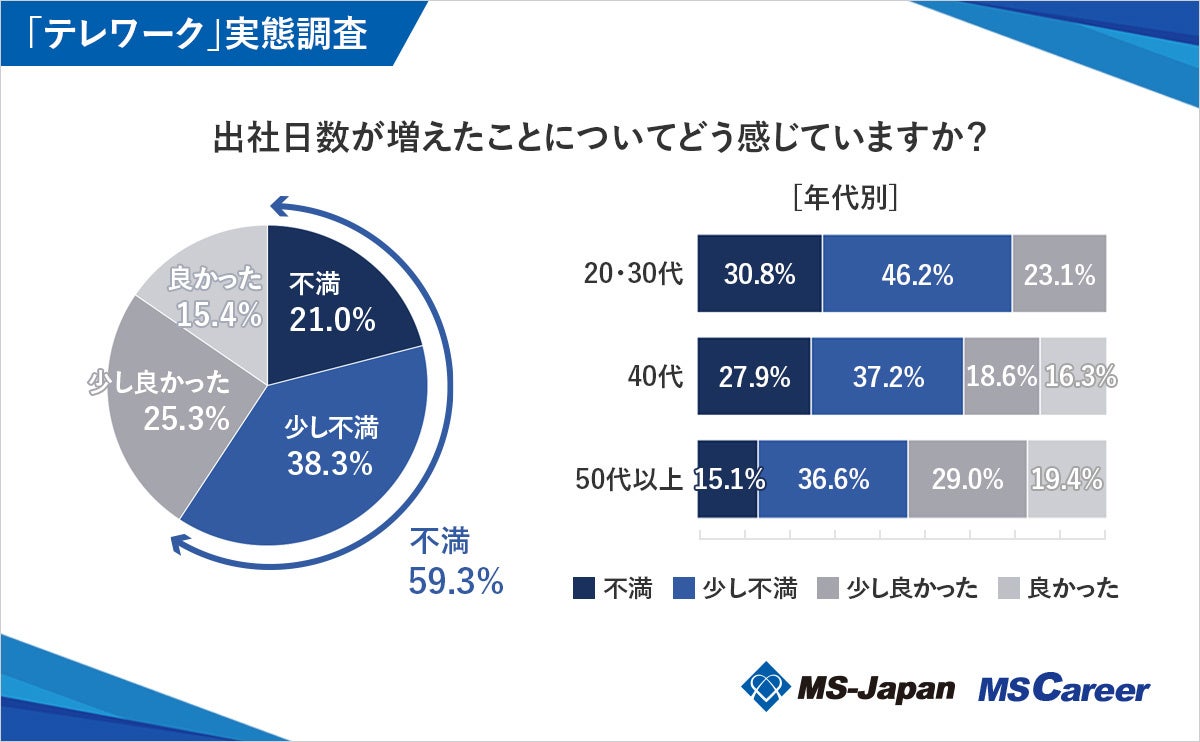また、この出社日数増加について、6割の人が不満に感じている一方、「4割」はよかったと感じている人がいることがわかりました。