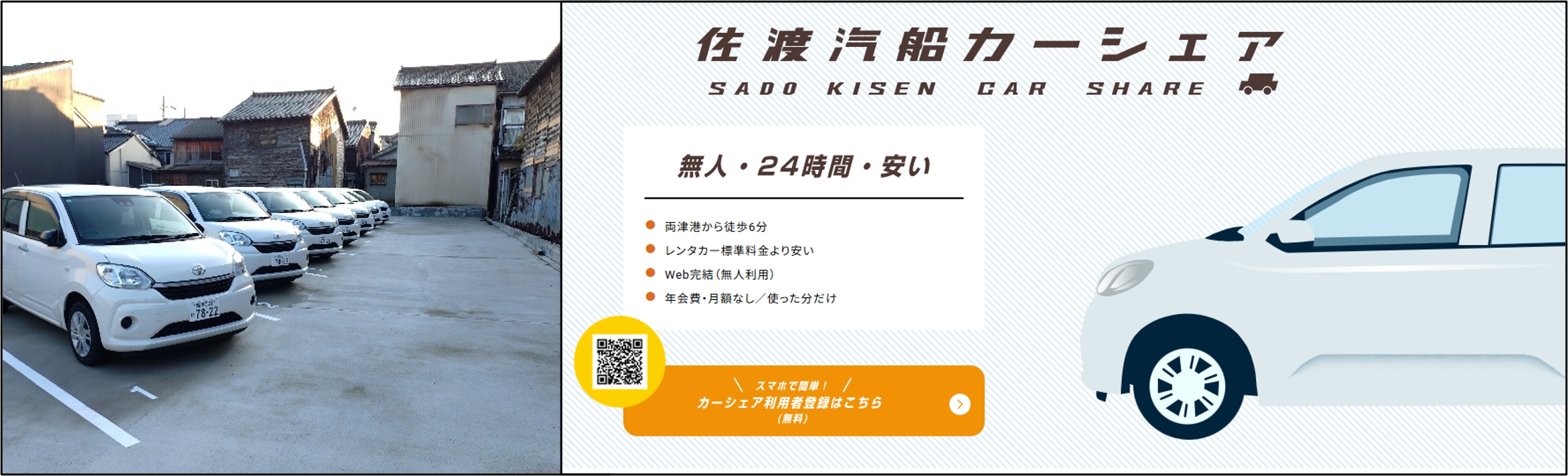 【佐渡汽船】 24時間対応のカーシェアサービス開始