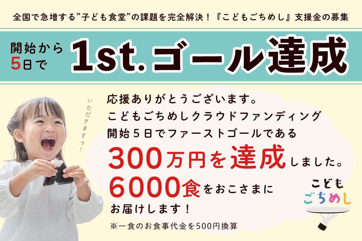 こどもごちめし、開始5日で寄付金額が1st.ゴールの300万円に到達!2nd.ゴール1000万円に向けて引き続き支援募集中!