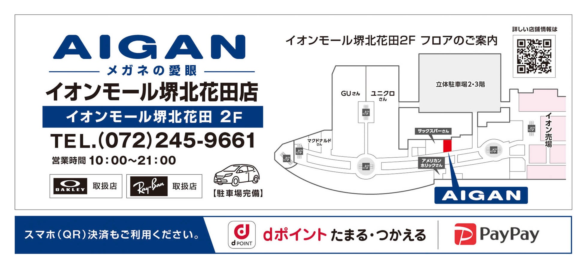 ※「AIGANイオンモール堺北花田店」は、眼鏡作製技能士在籍店です。