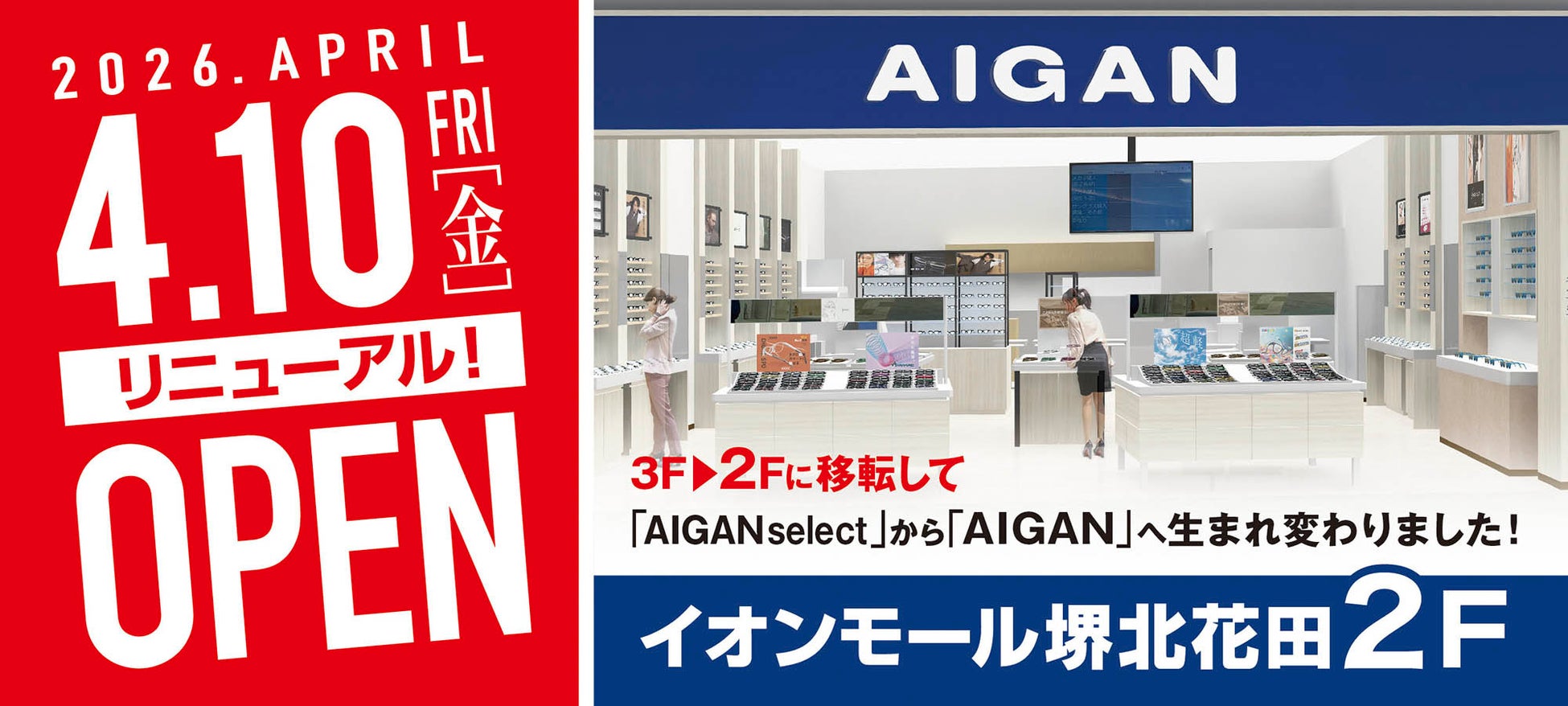 メガネ・補聴器を取り扱う「AIGAN」(https://www.aigan.co.jp/)を運営する愛眼株式会社(本社:大阪市天王寺区、代表取締役社長:佐々 昌俊)は、2026年4月10日(金)、大阪府堺市のイオンモール堺北花田にて「AIGAN イオンモール堺北花田店」を移転リニューアルオープンいたしました。