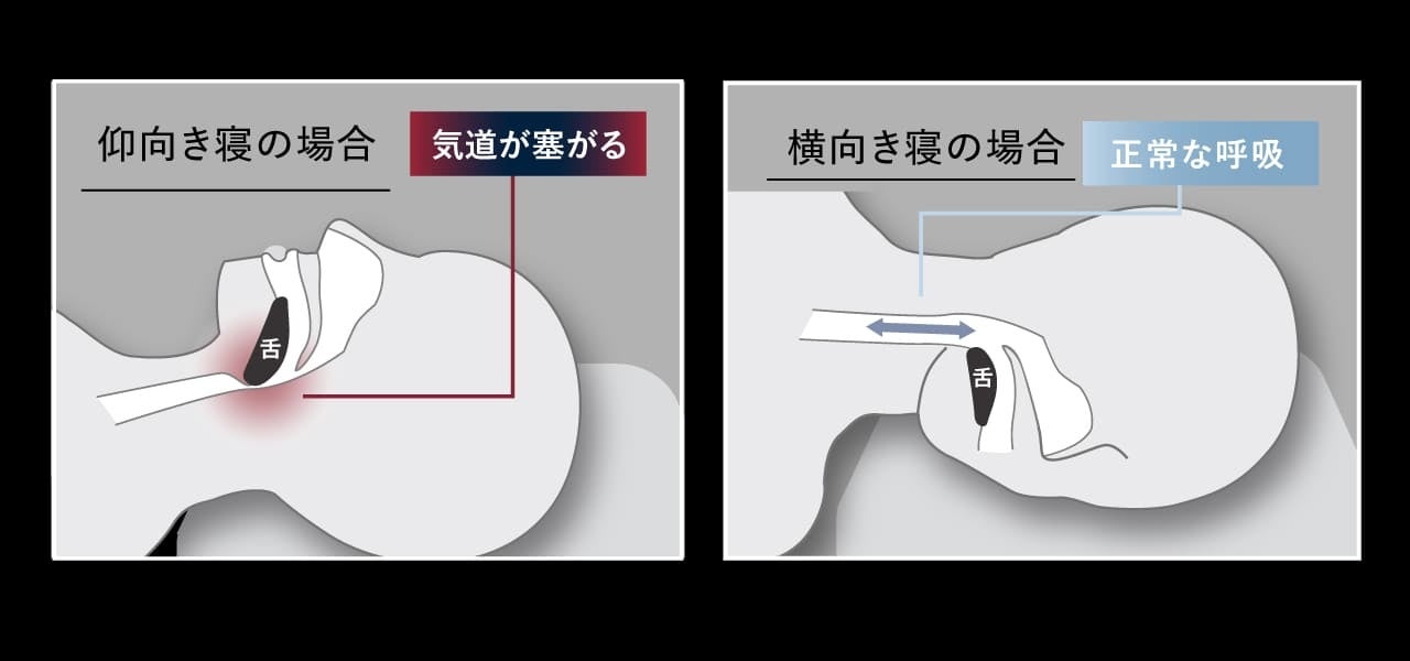 横向き寝補正で気道を確保、快適に眠る