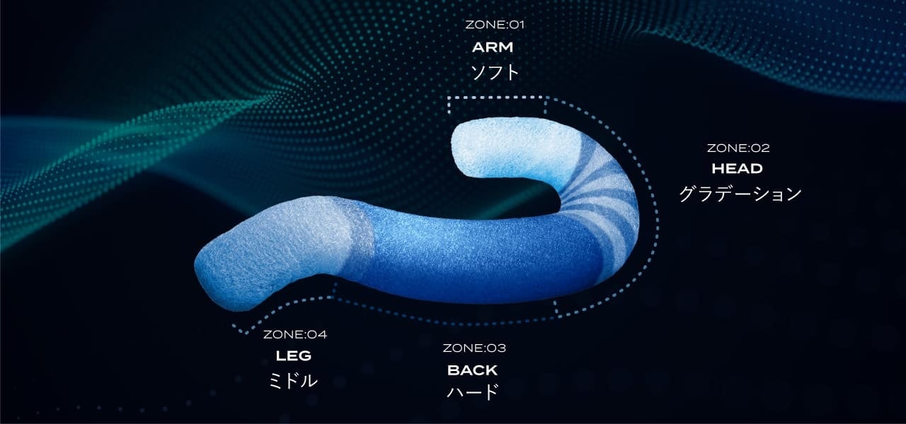 いびきの仕組みは、仰向けで寝ることで舌が喉の奥に沈み、気道を防ぐことが原因です。横向きで寝ることで、舌の落ち込みを防ぎ気道を確保します。「ボディピロー」は軽症のSASと診断された場合の体位治療として、寝姿勢を矯正するアイテムです。体位治療とは、仰向けで寝るといびきや無呼吸が発生する場合に、横向きで寝ることにより症状が軽減する治療法です。睡眠専門医で太田睡眠科学センター所長である、千葉伸太郎医師監修のもと設計した4ゾーン5レイヤー構造で、自然な横向き寝をサポートします。