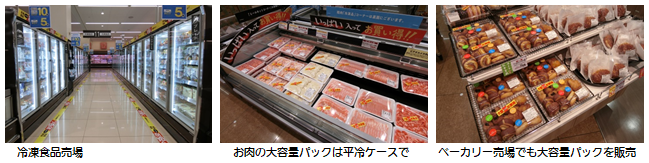 冷凍食品売場には新たな冷凍ケースを導入し、品揃えを大幅に拡大しました。冷凍野菜・果実やお弁当用商品をさらに充実させたほか、総菜売場で人気のたこ焼や春巻をご自宅で楽しめる「サミットオリジナル商品」なども販売しています。また、お肉・総菜・ベーカリーの売場では、ファミリーのお客様に喜ばれる「大容量パック」もご用意しました。