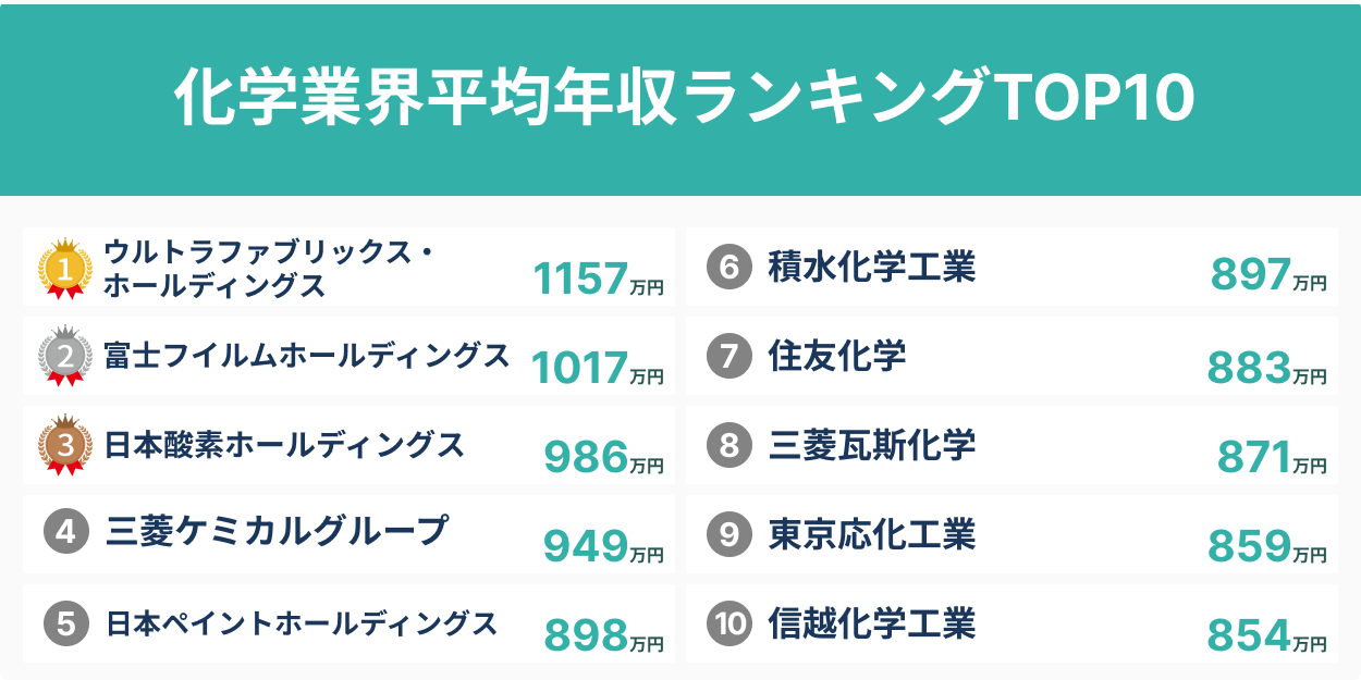 原油高騰の影響も受けながらも持続可能性と技術革新が進む注目の業界!化学業界平均年収ランキングTOP10を発表!/SalesNow DBレポート