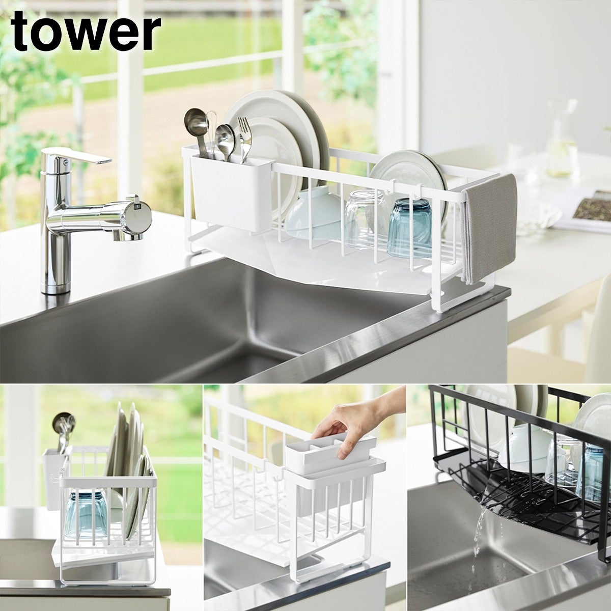 お皿が立てやすく、コップも置きやすい構造のバスケットは、取り外し可能なカトラリーポケットが付属しています。