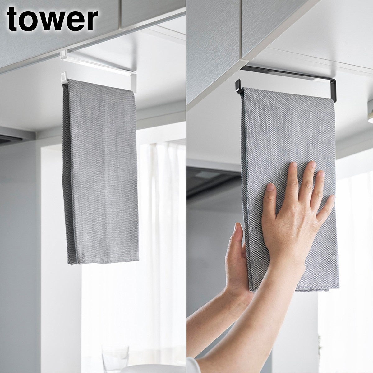 あいたスペースにタオルを浮かせて設置でき、サッと手を伸ばすだけで手を拭いたり、タオルや布巾を掛けられます。