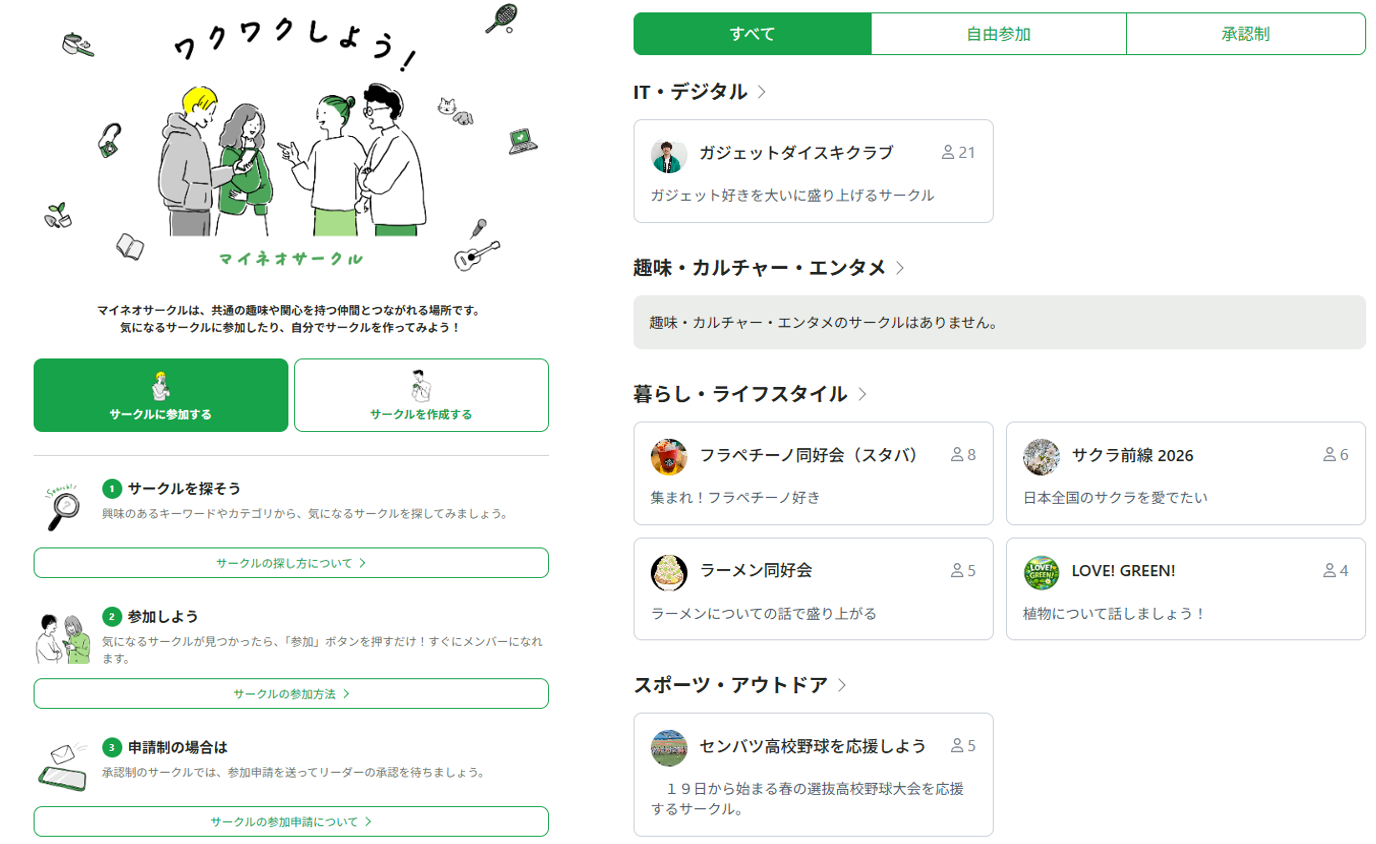 なお、本機能の導入に先立ち、2026年3月25日(水)より「マイネ王」サイト上にて先行公開を行い、サークル設立申請の受付を開始します。