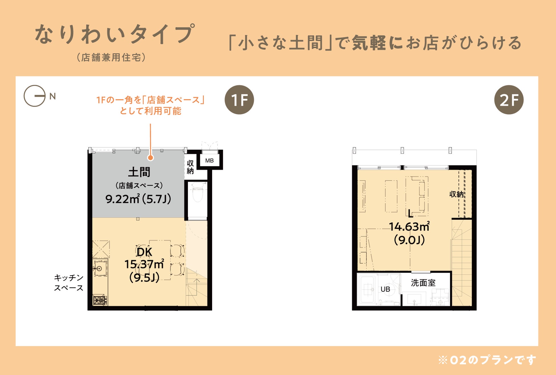 商いと住まいのバランスに合わせて2つのタイプをご用意しています。各タイプには「土間スペース」を設けており、住人の個性や得意なことが表現できる場所としてご利用いただけます。ご入居開始は、2025年11月下旬ごろを予定しております。