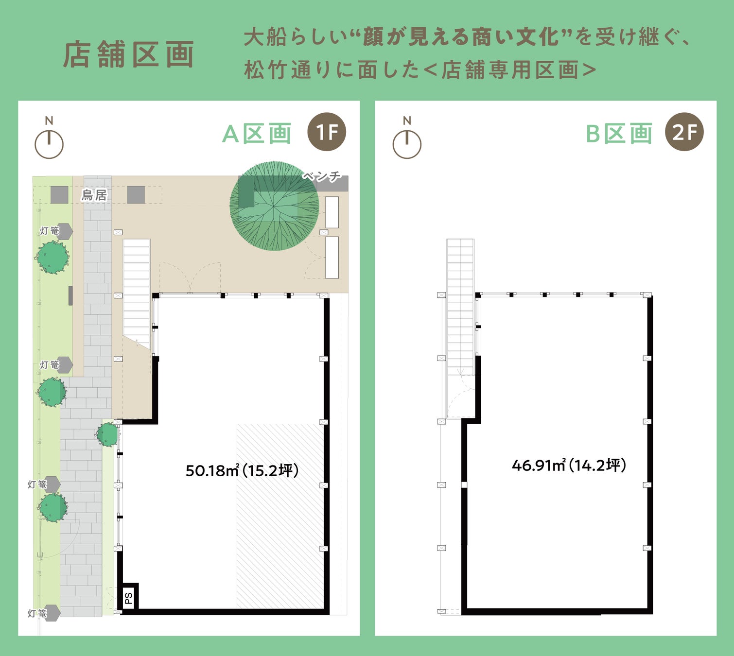 松竹通りに面した2区画は、大船らしい“顔が見える商い文化”を受け継ぐ「店舗専用区画」です。