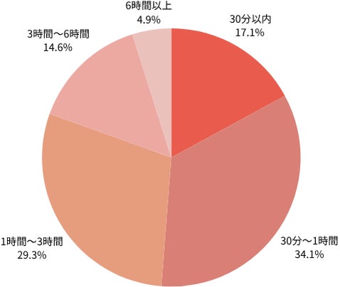 SMBCモビットの借入時間は「30分〜1時間」が34.1%で最も多かった。今回のアンケートでは全員が最長でも6時間以内にお金を受け取っており、SMBCモビットで即日融資が可能なことがデータからもわかった。