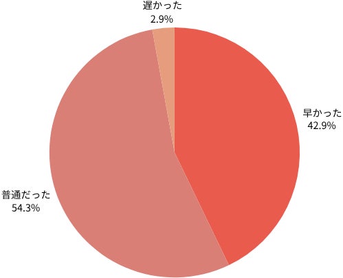 SMBCモビットの審査のスピードが「早かった」と回答した人は42.9%で、「遅かった」と答えた人は2.9%とわずかだった。
