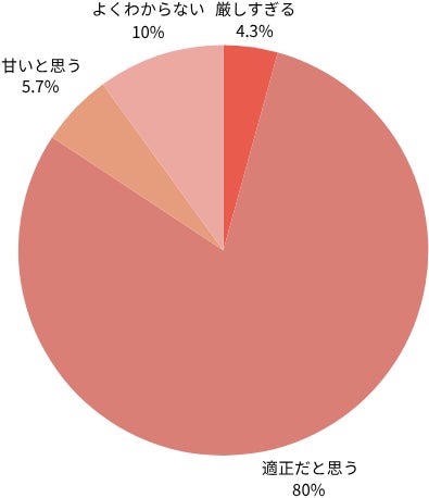 SMBCモビットの審査基準については、「適正だと思う」人が80%で最も多く、「甘いと思う」人も5.7%いた。