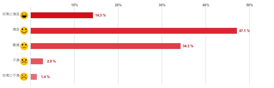 SMBCモビットの即日融資の満足度評価では、「非常に満足」「満足」との評価が合計で7割以上集まった。