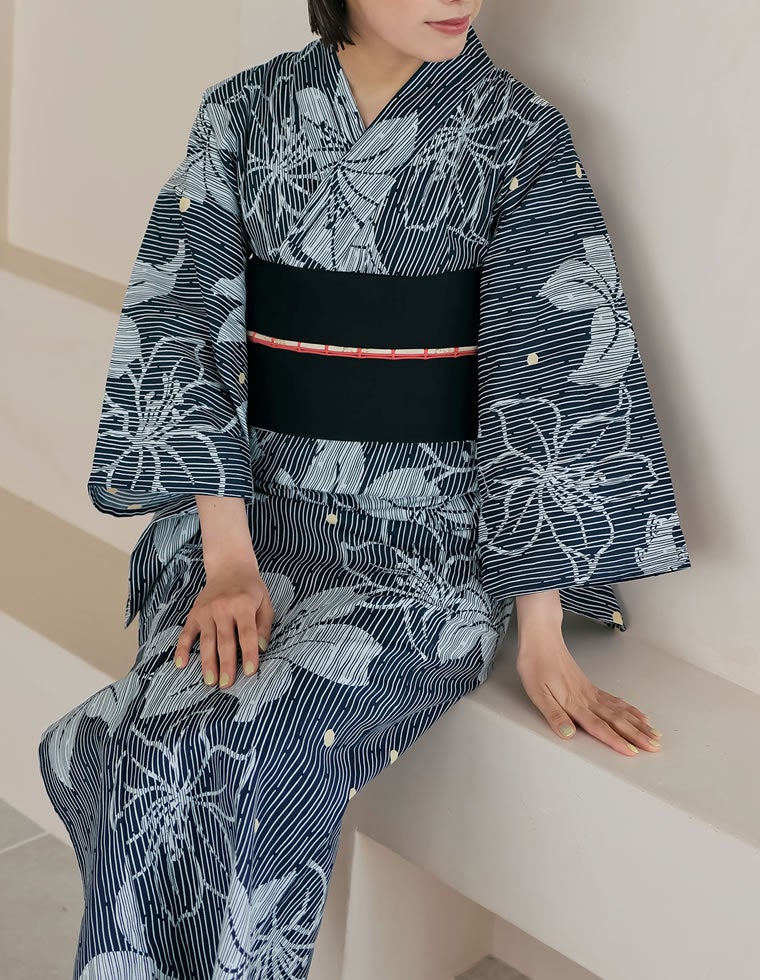 浴衣の生地には綿100%を使用し、しゃっきりとした肌触りと、吸湿性、通気性もあり、着心地の良さにも拘りました。