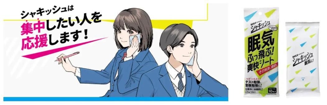 本企画では、受験勉強中に気分をリフレッシュするアイテムとして話題の、清涼ウェットシート『シャキッシュ』(マックス社)を10,000名の大学受験生へ配布。眠気が覚めるほどの爽快感による気分転換で、受験直前期の生徒を応援します。