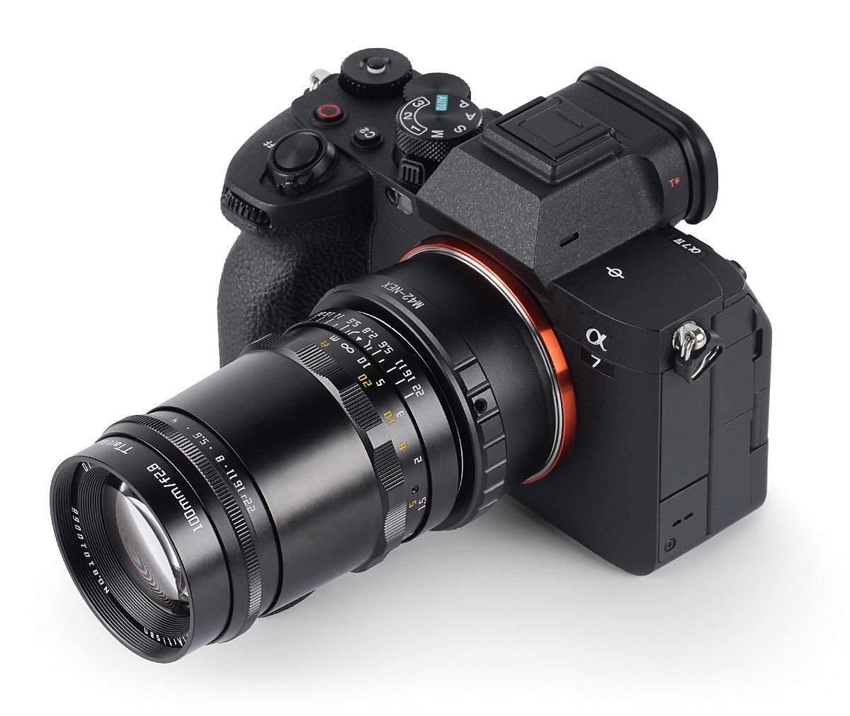 TTArtisan 100mm f/2.8 は、フィルムカメラでも使える「M42マウント」を採用したレンズですが、マウントアダプターを装着して、他種マウントの一眼レフカメラやミラーレスカメラで使用することができます。